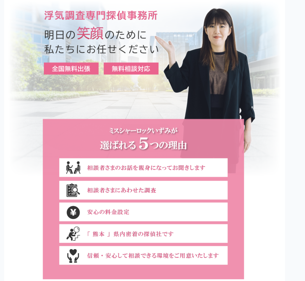 熊本県菊池郡菊陽町光の森の浮気不倫専門探偵興信所ミスシャーロックいずみ.熊本です。